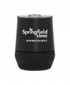 12 oz double wall 18/8 stainless steel thermal tumbler with copper vacuum insulation, push-on lid, matching swivel closure, and removable silicone base.