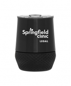 12 oz double wall 18/8 stainless steel thermal tumbler with copper vacuum insulation, push-on lid, matching swivel closure, and removable silicone base.