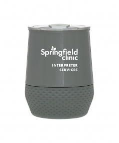 12 oz double wall 18/8 stainless steel thermal tumbler with copper vacuum insulation, push-on lid, matching swivel closure, and removable silicone base.