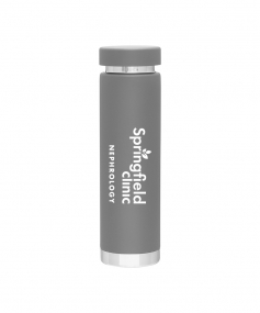 16.9 oz. double wall 18/8 stainless steel thermal bottle with copper vacuum insulation, threaded insulated stainless steel lid, high polish rim and base, and powder coated finish. Hand wash recommended; Do not microwave. Dimensions: 9 3/8 H x 2 5/8".