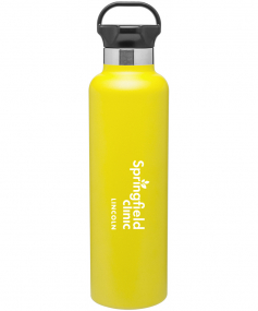 24 oz powder coated double wall 18/8 stainless steel thermal bottle with copper vacuum insulation, threaded gear-shaped insulated lid and carrying handle Complies with FDA, Prop 65. 11.25" H x 3" W
