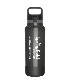 25 oz double wall 18/8 stainless steel thermal bottle with copper vacuum insulation, threaded one-touch push-button lid, locking mechanism, carrying handle, and rubberized base - patent pending - gift box included; Hand wash recommended; Do not microwave; 11 h x 3 w ; 739mL.