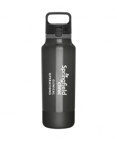 25 oz double wall 18/8 stainless steel thermal bottle with copper vacuum insulation, threaded one-touch push-button lid, locking mechanism, carrying handle, and rubberized base - patent pending - gift box included; Hand wash recommended; Do not microwave; 11 h x 3 w ; 739mL.