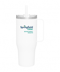 40 oz double wall 18/8 stainless steel thermal mug with copper vacuum insulation, stainless steel rim, dual-purpose push-on clear lid, matching sliding closure, flexible wide silicone straw, and powder coated finish. Individual gift box. Hand wash recommended. Do not microwave. Complies with FDA, Prop 65. 9.75" H x 4" W