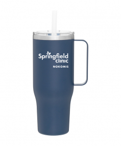 40 oz double wall 18/8 stainless steel thermal mug with copper vacuum insulation, stainless steel rim, dual-purpose push-on clear lid, matching sliding closure, flexible wide silicone straw, and powder coated finish. Individual gift box. Hand wash recommended. Do not microwave. Complies with FDA, Prop 65. 9.75" H x 4" W