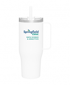 40 oz double wall 18/8 stainless steel thermal mug with copper vacuum insulation, stainless steel rim, dual-purpose push-on clear lid, matching sliding closure, flexible wide silicone straw, and powder coated finish. Individual gift box. Hand wash recommended. Do not microwave. Complies with FDA, Prop 65. 9.75" H x 4" W