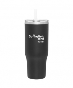 40 oz double wall 18/8 stainless steel thermal tumbler with copper vacuum insulation, stainless steel rim, dual-purpose push-on clear lid, matching sliding closure, flexible wide silicone straw, and powder coated finish