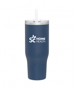 40 oz double wall 18/8 stainless steel thermal tumbler with copper vacuum insulation, stainless steel rim, dual-purpose push-on clear lid, matching sliding closure, flexible wide silicone straw, and powder coated finish