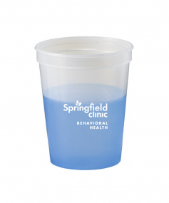 Thermo sensitive color changing mood stadium cup is reusable and recyclable. Fits most auto cup holders. This cup is BPA free food grade polypropylene. Great for any occasion where you want a fun item that helps your message stand out. Complies with Prop 65. 4 1/2" H x 3 5/8" Diameter