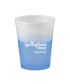 Thermo sensitive color changing mood stadium cup is reusable and recyclable. Fits most auto cup holders. This cup is BPA free food grade polypropylene. Great for any occasion where you want a fun item that helps your message stand out. Complies with Prop 65. 4 1/2" H x 3 5/8" Diameter
