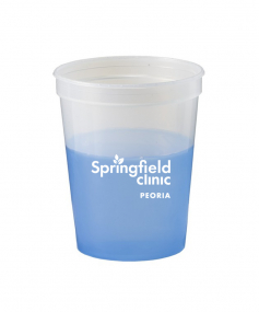 Thermo sensitive color changing mood stadium cup is reusable and recyclable. Fits most auto cup holders. This cup is BPA free food grade polypropylene. Great for any occasion where you want a fun item that helps your message stand out. Complies with Prop 65. 4 1/2" H x 3 5/8" Diameter