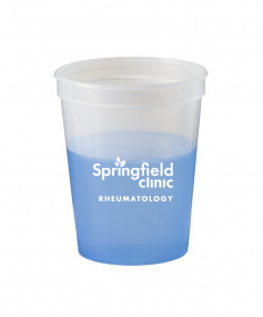 Thermo sensitive color changing mood stadium cup is reusable and recyclable. Fits most auto cup holders. This cup is BPA free food grade polypropylene. Great for any occasion where you want a fun item that helps your message stand out. Complies with Prop 65. 4 1/2" H x 3 5/8" Diameter