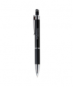 Sleek lines & fine detailing for high end appeal. High gloss fashion colors with shining silver accents. Diamond etched knurled grip & smooth writing black ink for writing comfort. Complies with Prop 65. 5.43" L x 5.43" L x 5" Diameter