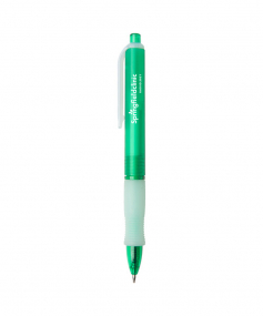 Wide body retractable gel pen with rubber grip. Ferrule and plunger with natural clip and grip. Protective ballpoint covering included. High quality Gel ink. 5 3/4" L x 15/32" Diameter.