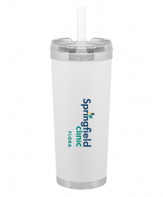 24 oz double wall 18/8 stainless steel thermal tumbler with copper vacuum insulation, stainless steel rim and base, threaded Eastman Tritan lid, snap closure, straw opening, and flexible wide silicone straw.