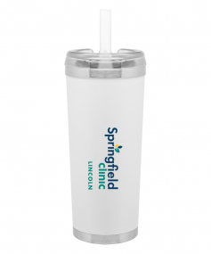 24 oz double wall 18/8 stainless steel thermal tumbler with copper vacuum insulation, stainless steel rim and base, threaded Eastman Tritan lid, snap closure, straw opening, and flexible wide silicone straw.