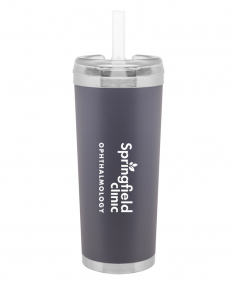 24 oz double wall 18/8 stainless steel thermal tumbler with copper vacuum insulation, stainless steel rim and base, threaded Eastman Tritan lid, snap closure, straw opening, and flexible wide silicone straw.