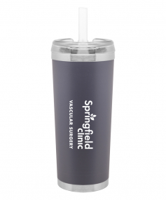 24 oz double wall 18/8 stainless steel thermal tumbler with copper vacuum insulation, stainless steel rim and base, threaded Eastman Tritan lid, snap closure, straw opening, and flexible wide silicone straw.