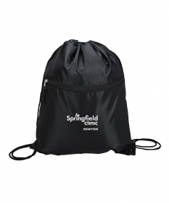 Sport bag with a contrast color front-zippered pocket, reinforced corners and a drawstring closure. Drawstrings double as backpack straps. 12 1/2" W x 15 1/2" H x 3/16" D.