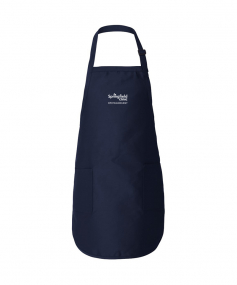 Full-Length Apron made of 7.5 oz., 55 % cotton / 45% polyester. Measures 22" W x 30" H, and has two patch pockets. It also features an adjustable neck strap with a buckle and waist side ties.