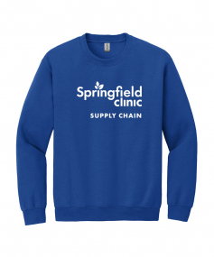 8-ounce, 50/50 cotton/poly. Double-needle stitching at waistband and cuffs. 1x1 rib knit collar, cuffs and waistband with spandex.