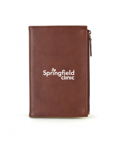 Stylish executive notebook with PU/split leather outer and suede inner cover. Features large zipper pocket (fits up to iPhone 7S Plus). Includes 80-sheet replaceable notebook. 5 3/4" H x 8 1/2" H
