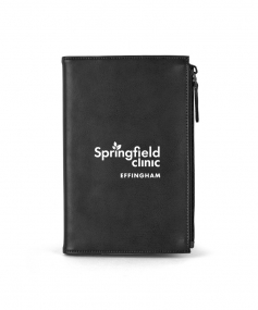 Stylish executive notebook with PU/split leather outer and suede inner cover. Features large zipper pocket (fits up to iPhone 7S Plus). Includes 80-sheet replaceable notebook. 5 3/4" H x 8 1/2" H