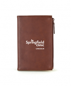 Stylish executive notebook with PU/split leather outer and suede inner cover. Features large zipper pocket (fits up to iPhone 7S Plus). Includes 80-sheet replaceable notebook. 5 3/4" H x 8 1/2" H