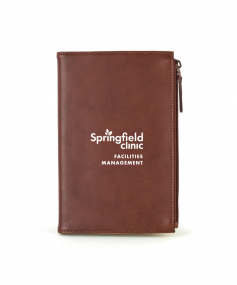 Stylish executive notebook with PU/split leather outer and suede inner cover. Features large zipper pocket (fits up to iPhone 7S Plus). Includes 80-sheet replaceable notebook. 5 3/4" H x 8 1/2" H