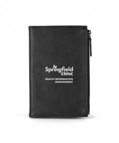 Stylish executive notebook with PU/split leather outer and suede inner cover. Features large zipper pocket (fits up to iPhone 7S Plus). Includes 80-sheet replaceable notebook. 5 3/4" H x 8 1/2" H