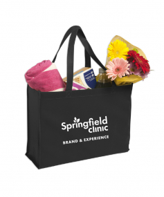Constructed of 80 gsm non-woven polypropylene with reinforced 22" handles and 6" gusset. Complies with Prop 65. 12" H x 16" W x 6" D