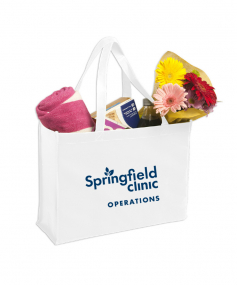 Constructed of 80 gsm non-woven polypropylene with reinforced 22" handles and 6" gusset. Complies with Prop 65. 12" H x 16" W x 6" D