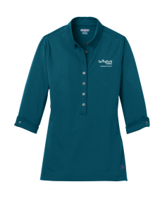 Break away from the ordinary in this button-down style polo that features cuffed 3/4 sleeves.