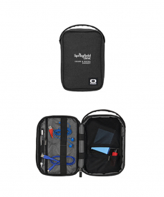 The ultimate travel organizer, the Vault holds cords, charging bricks, memory cards and more tech gear. Made with 900D poly two-tone with PU coating/200D poly lining. Padded grab handle Interior zippered pocket Elastic loops for cords and pens Two interior zippered mesh pockets. 9" H x 6" W x 2.5" D