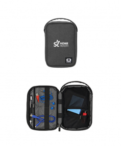 The ultimate travel organizer, the Vault holds cords, charging bricks, memory cards and more tech gear. Made with 900D poly two-tone with PU coating/200D poly lining. Padded grab handle Interior zippered pocket Elastic loops for cords and pens Two interior zippered mesh pockets. 9" H x 6" W x 2.5" D