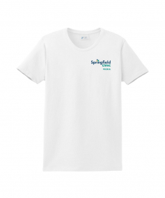 6.1 Oz. 100% Soft Spun Cotton. 98/2 Cotton/Poly (Ash). 90/10 Cotton/Poly (Athletic Heather). Shorter Cut Through The Body And Sleeves For A More Feminine Fit.