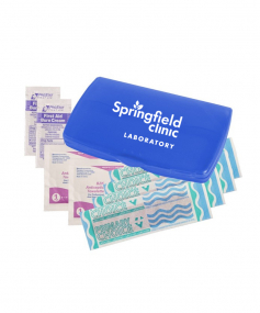 Ultra-trim case contains 4-latex-free bandages, 2-antiseptic towelettes and 2-first aid cream packets. Complies with Prop 65. 2 9/16" W x 4 1/8" H x 1/2" D