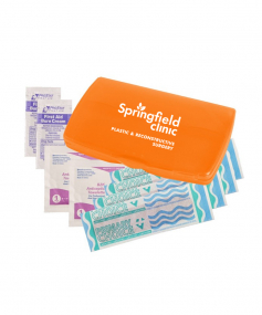 Ultra-trim case contains 4-latex-free bandages, 2-antiseptic towelettes and 2-first aid cream packets. Complies with Prop 65. 2 9/16" W x 4 1/8" H x 1/2" D