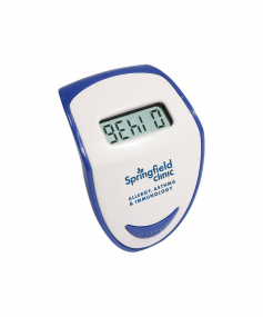 Step Hero Pedometer tracks up to 99,999 steps, with Imperial or Metric measuring settings and features top-view LCD display, energy-saving auto shut-off and idle mode and secure belt clip. Powered by non-replaceable battery. Complies with CE, Prop 65. 1.625" L x 1.125" W x 1.375" H