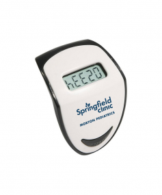 Step Hero Pedometer tracks up to 99,999 steps, with Imperial or Metric measuring settings and features top-view LCD display, energy-saving auto shut-off and idle mode and secure belt clip. Powered by non-replaceable battery. Complies with CE, Prop 65. 1.625" L x 1.125" W x 1.375" H
