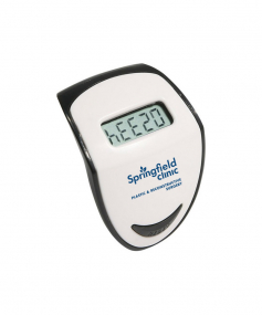 Step Hero Pedometer tracks up to 99,999 steps, with Imperial or Metric measuring settings and features top-view LCD display, energy-saving auto shut-off and idle mode and secure belt clip. Powered by non-replaceable battery. Complies with CE, Prop 65. 1.625" L x 1.125" W x 1.375" H