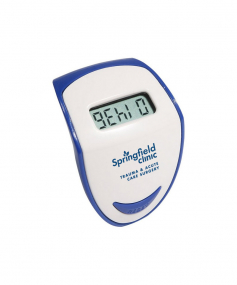 Step Hero Pedometer tracks up to 99,999 steps, with Imperial or Metric measuring settings and features top-view LCD display, energy-saving auto shut-off and idle mode and secure belt clip. Powered by non-replaceable battery. Complies with CE, Prop 65. 1.625" L x 1.125" W x 1.375" H