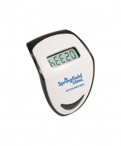 Step Hero Pedometer tracks up to 99,999 steps, with Imperial or Metric measuring settings and features top-view LCD display, energy-saving auto shut-off and idle mode and secure belt clip. Powered by non-replaceable battery. Complies with CE, Prop 65. 1.625" L x 1.125" W x 1.375" H