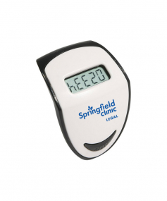 Step Hero Pedometer tracks up to 99,999 steps, with Imperial or Metric measuring settings and features top-view LCD display, energy-saving auto shut-off and idle mode and secure belt clip. Powered by non-replaceable battery. Complies with CE, Prop 65. 1.625" L x 1.125" W x 1.375" H